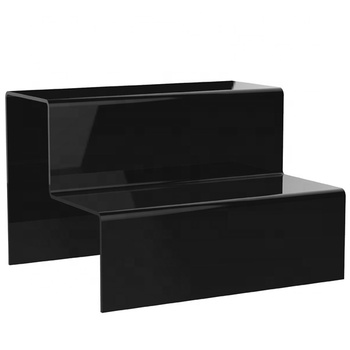 Rak Display Akrilik Hitam 2 Tingkat, Peninggi Plastik Akrilik Hitam, Rak Plastik
